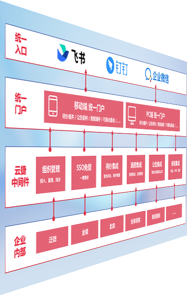 对协作平台提供支持服务,,支持企业应用与协作平台对接,,包含组织同步、、、消息集成、、待办集成等。。支持目前主流的协作平台:钉钉、、企微和飞书。。